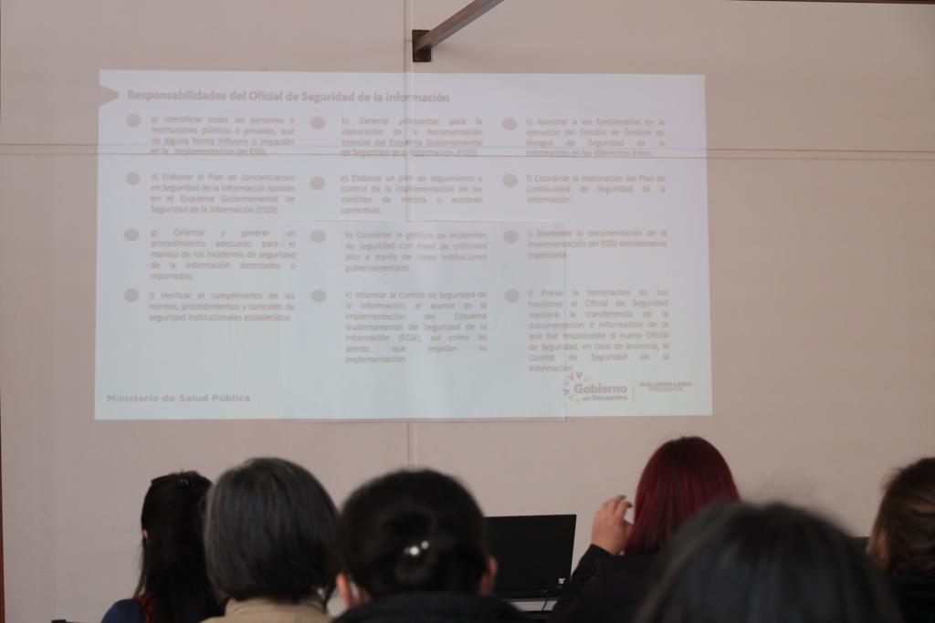 Seguridad de la información, riesgos en el uso de la tecnología y tratamiento de datos personales fueron las temáticas abordas en la capacitación para funcionarios del Ministerio de Salud Pública (MSP). El taller se realizó el pasado 24 de enero de 2023 para 58 funcionarios de Quito, planta central.