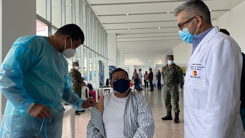 “El Gobierno del Encuentro, a la fecha, registra la aplicación de 511 mil dosis de la vacuna contra la COVID-19. Nuestro Plan es ordenado, digno y transparente”, señaló el viceministro Miguel Moreira, al verificar que la jornada se cumplió con orden en el Centro de Convenciones Bicentenario, colegios Don Bosco y Andrés Bello. Se refirió también a que, si existen menos contagios y casos graves, habrá menor saturación en las salas de cuidados intensivos de los hospitales, lo que permitirá incrementar la atención para otras enfermedades.