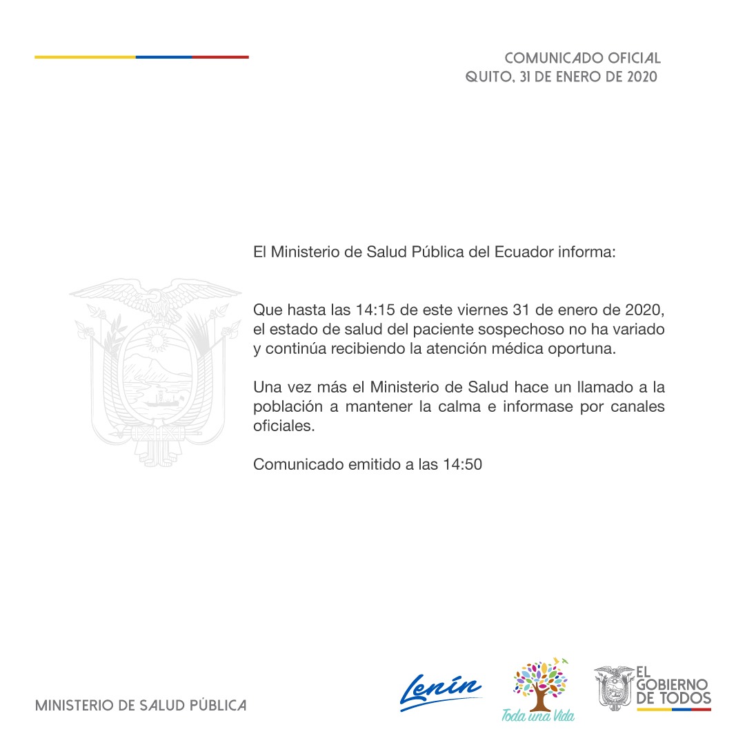 COMUNICADO 14:50| Informe estado actual paciente caso sospechoso de coronavirus.