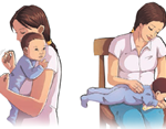 Sostener a su hija o hijo sobre su pecho, de tal manera que la cabeza quede a la altura de su hombro, o recuéstelo sobre sus piernas.