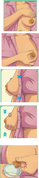 - Levantar su seno con su mano en forma de C y estimule con el pezón la boca de su hija o hijo.