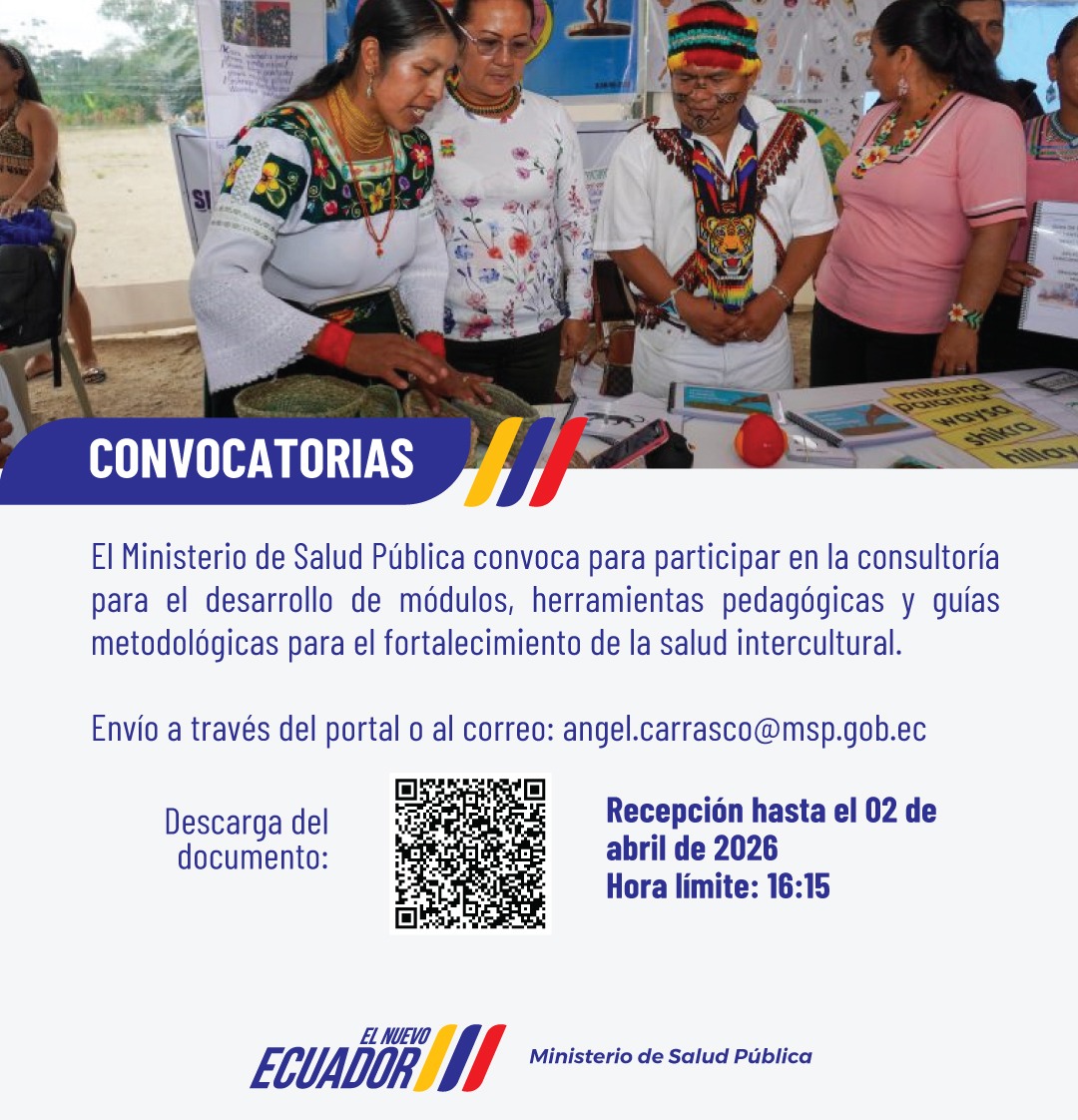 Ministerio de Salud Pública > Convocatoria > Consultoría para el desarrollo de módulos, herramientas pedagógicas y guías metodológicas para el fortalecimiento de la salud intercultural