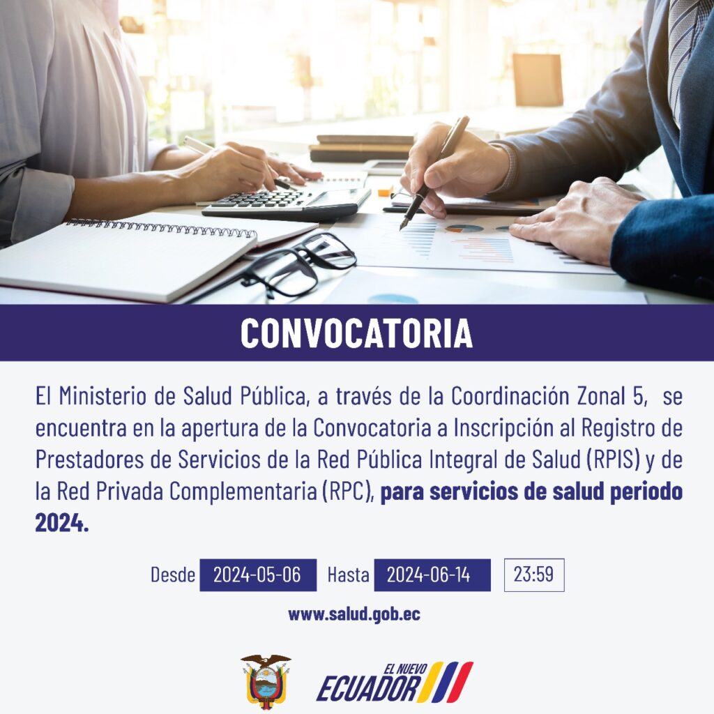 Convocatoria a Inscripción al Registro de Prestadores de Servicios de la Red Pública Integral de Salud (RPIS) y de la Red Privada Complementaria (RPC), para servicios de salud período 2024