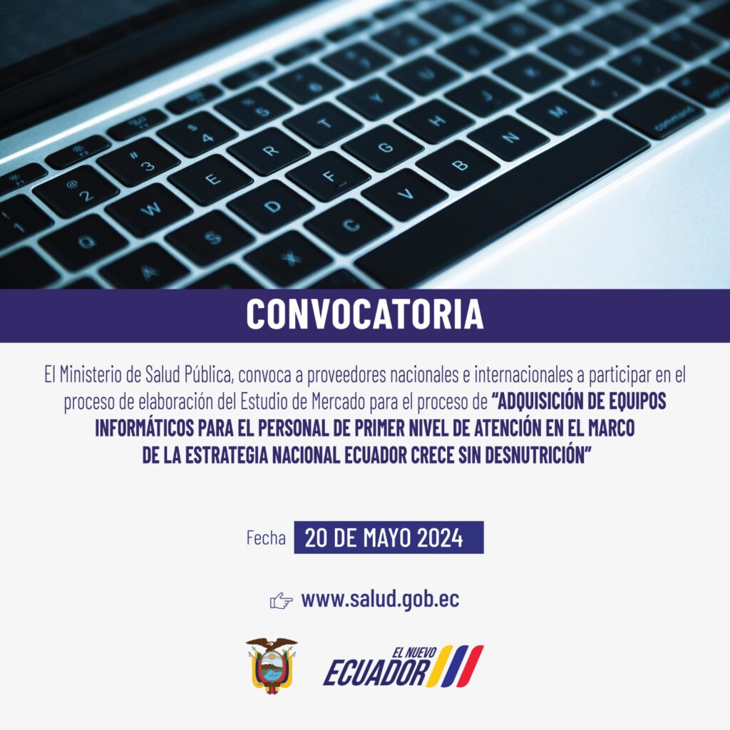 Convocatoria > Convocatoria a participar en el proceso de elaboración del Estudio de Mercado para el proceso de “ADQUISICIÓN DE EQUIPOS INFORMÁTICOS PARA EL PERSONAL DE PRIMER NIVEL DE ATENCIÓN EN EL MARCO DE LA ESTRATEGIA NACIONAL ECUADOR CRECE SIN DESNUTRICIÓN”