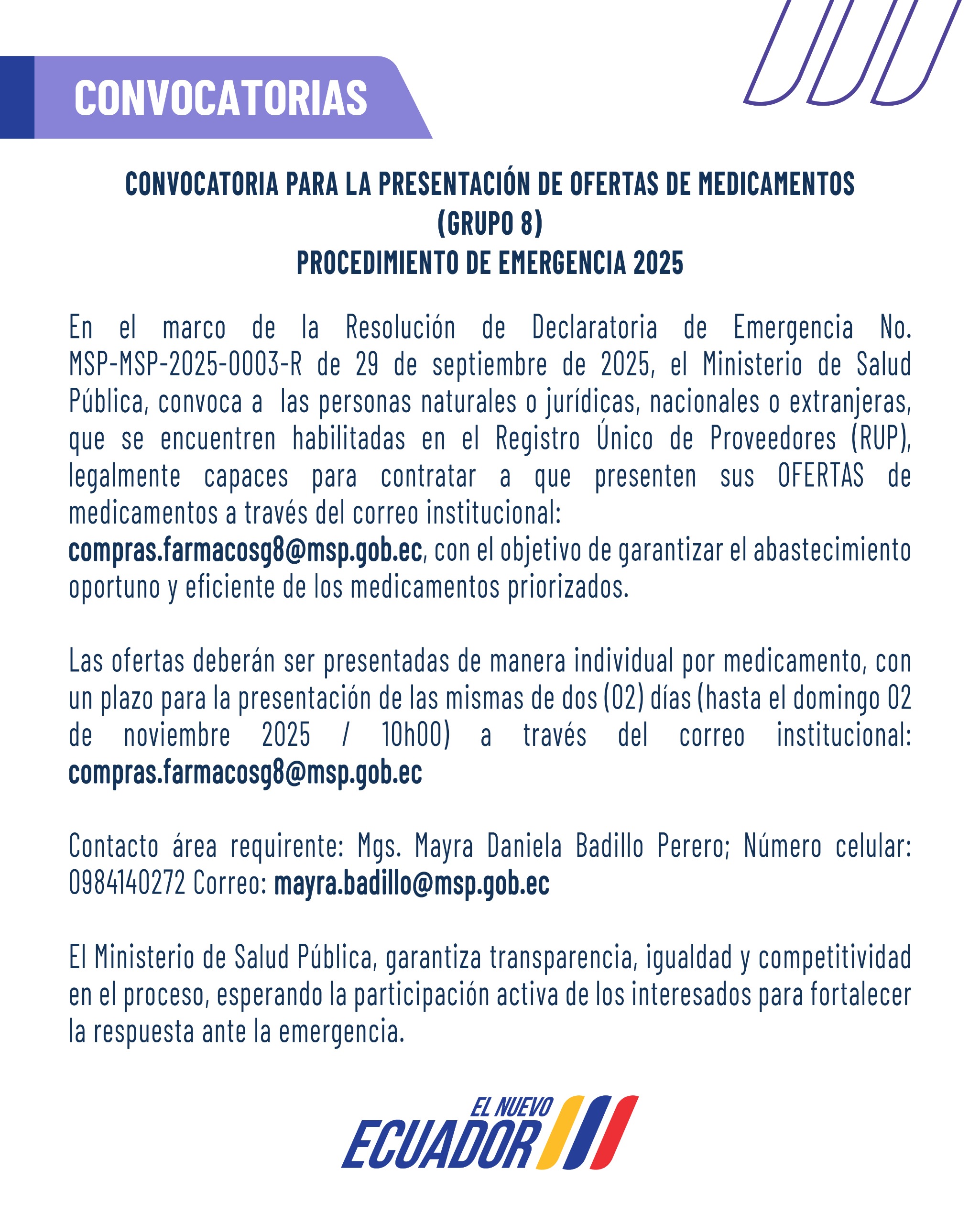 > CONVOCATORIA PARA LA PRESENTACIÓN DE OFERTAS DE MEDICAMENTOS (Grupo 8). PROCEDIMIENTO DE EMERGENCIA 2025.