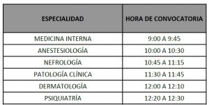 Se convoca a todos los Profesionales Posgradistas de la Universidad Central del Ecuador de las especialidades de Dermatología, Anestesiología, Medicina Interna, Nefrología, Patología Clínica y Psiquiatría, al proceso de selección de plazas para lo cual deberán presentarse el jueves 26 de diciembre de 2019 en la Plataforma Gubernamental de Desarrollo Social ubicado en la Av. Quitumbe Ñan y Av. Amaru Ñan, ciudad de Quito, Sala Nro. 2 ubicada en planta baja, según se detalla a continuación: