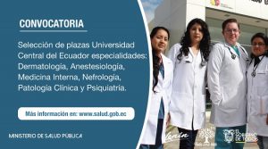 Convocatoria para la selección de plazas de los profesionales posgradistas de la Universidad Central del Ecuador de las especialidades de Dermatología, Anestesiología, Medicina Interna, Nefrología, Patología Clínica y Psiquiatría.