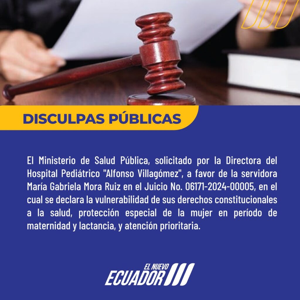 Disculpas Públicas a favor de la servidora María Gabriela Mora Ruiz en el juicio No. 06171-2024-00005.