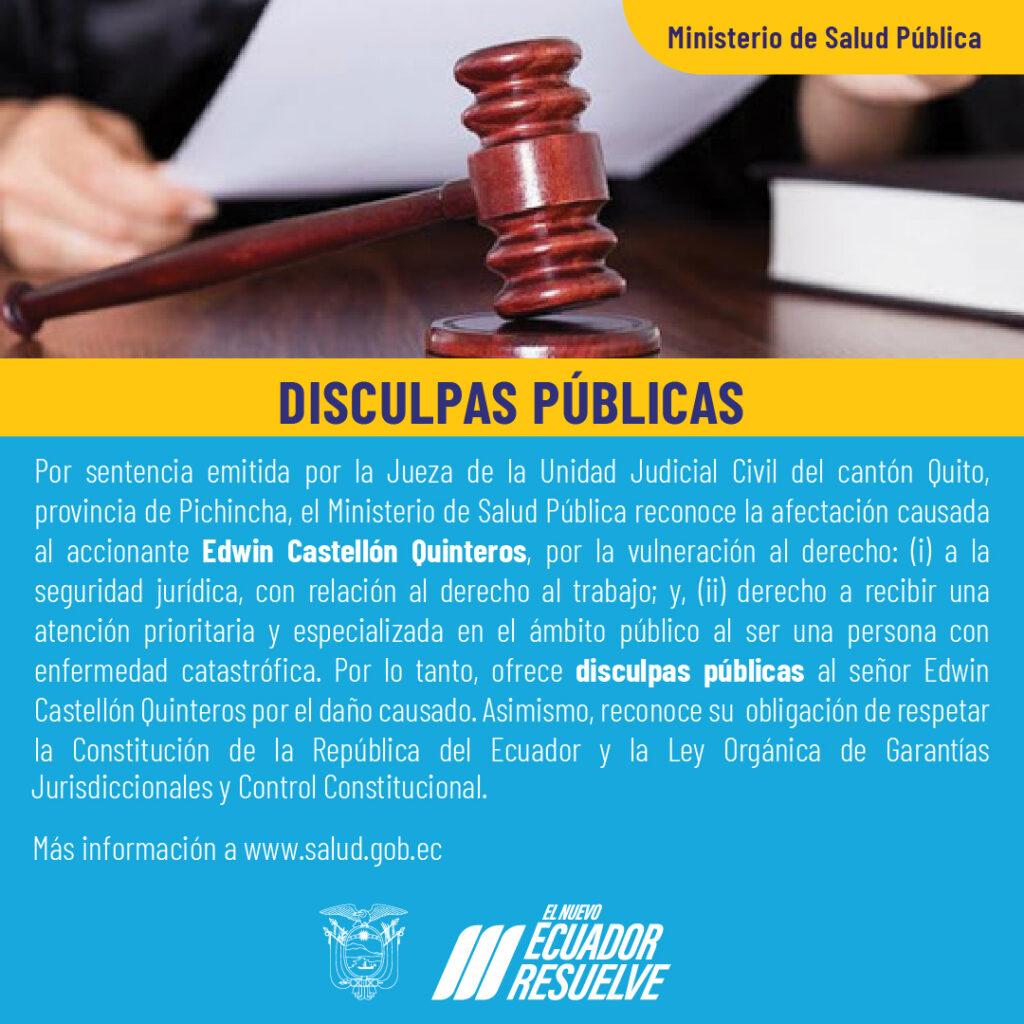 Disculpas públicas – Acción de Protección N° 17230-2020-10316, presentado por EDWIN CASTELLÓN QUINTEROS