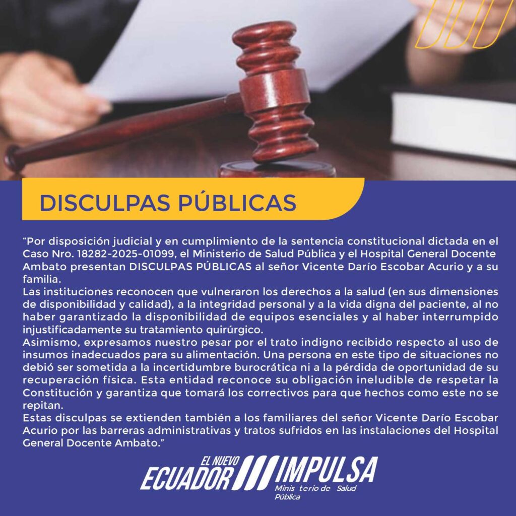 > Disculpas Públicas al señor Vicente Darío Escobar Acurio y a su familia.