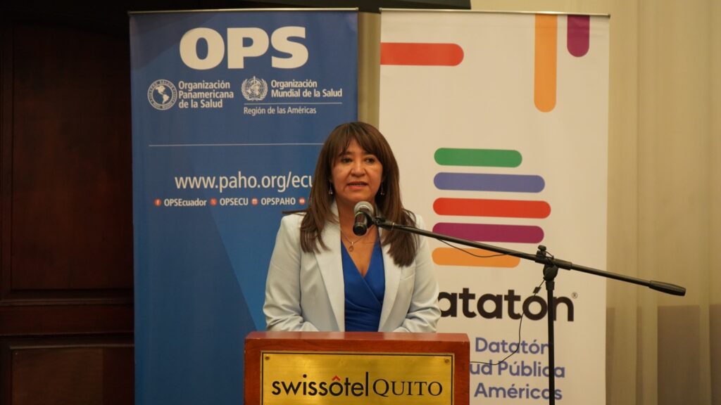 “Sin duda (el Datatón) es un reto para la salud pública, más cuando el mundo ya está inmenso en la era de la información y más todavía en el uso de la tecnología para ofrecer servicios más eficientes y lograr coberturas más amplias”, dijo la Dra. Sonia Quezada, representante de OPS/OMS en Ecuador, tras resaltar que “construir y co-crear (data) con los actores del sistema posibilita una inteligencia colectiva que aporta a una estructura que permitirá tomar mejores decisiones en política pública en lo local y nacional”. Reiteró el compromiso que tiene el organismo con el país para construir la paz.