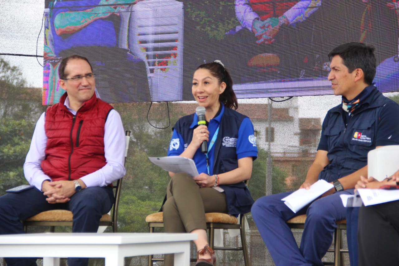La Viceministra de Gobernanza de la Salud, María Gabriela Aguinaga junto a delegados de la Organización Panamericana de la Salud (OPS/OMS), autoridades locales y ciudadanía en general estuvieron presentes en el evento que marcó el inicio de la campaña que mediante la visita de brigadas de vacunación visitará unidades educativas y centros de cuidado infantil en su primera fase.