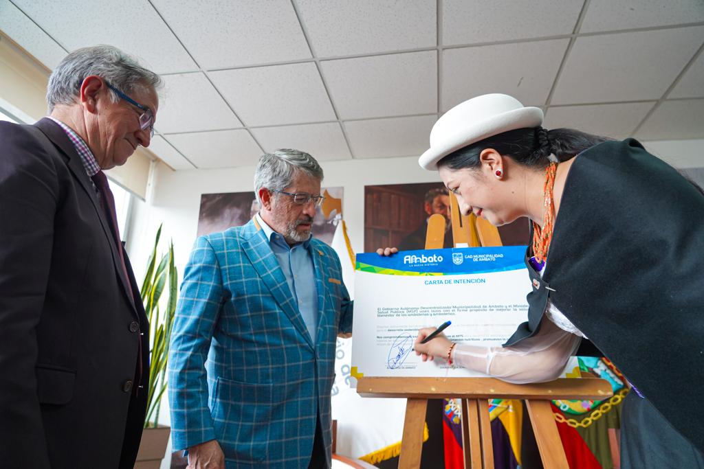 La subscripción la realizó Diana Caiza, alcaldesa de Ambato, José Avilés, coordinador zonal salud 3, y la autoridad sanitara nacional, como testigo de honor.