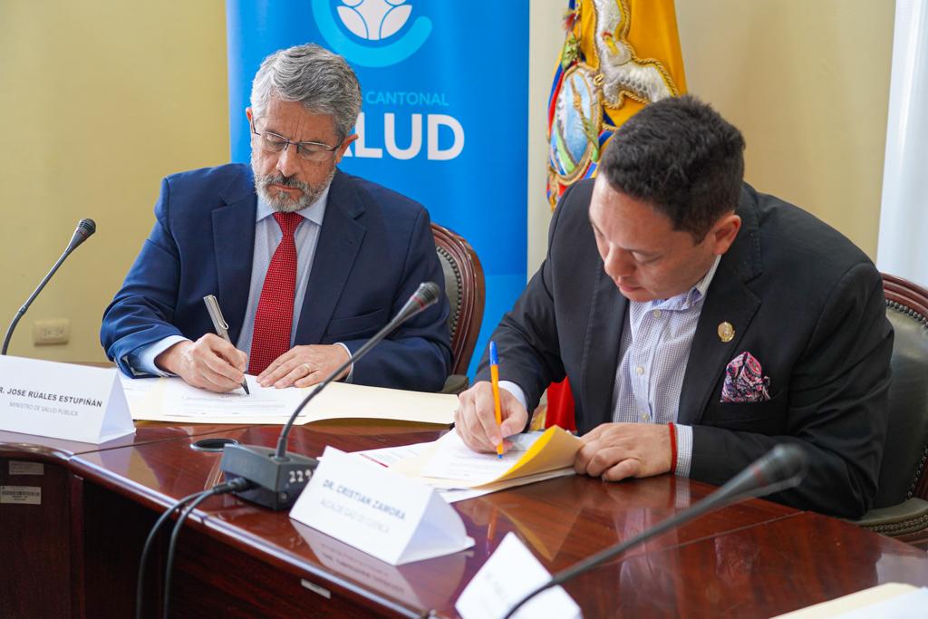 Hoy, el Ministerio de Salud Pública (MSP) y la Alcaldía de Cuenca firmaron la Carta de Intención la cual define la hoja de ruta que permitirá renovar la certificación de Municipio Saludable para el Gobierno Autónomo Descentralizado (GAD) de la capital de la provincia del Azuay. La firma de esta renovación contó con la presencia de José Ruales, ministro de Salud Pública, y Cristian Zamora, alcalde de la ciudad.