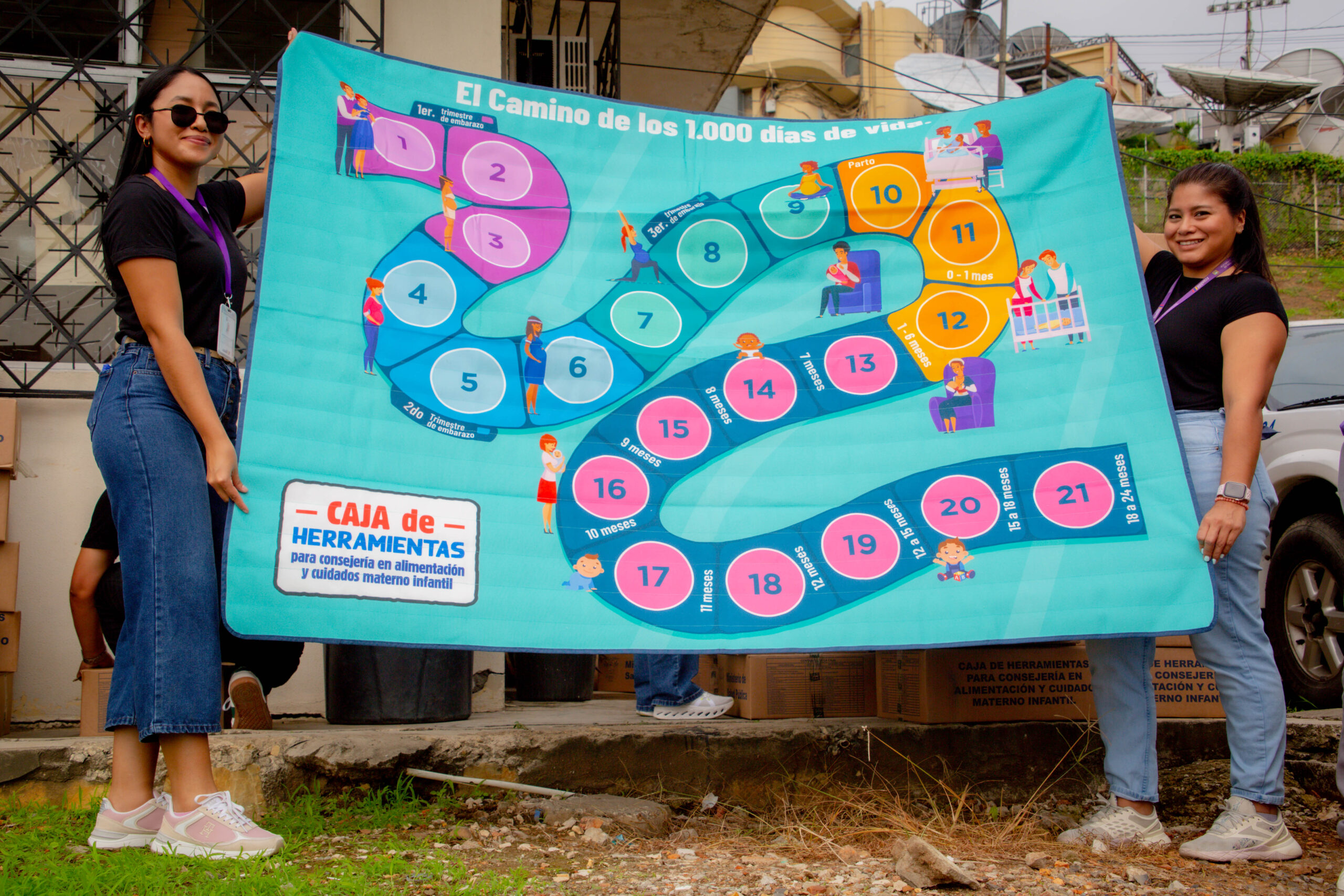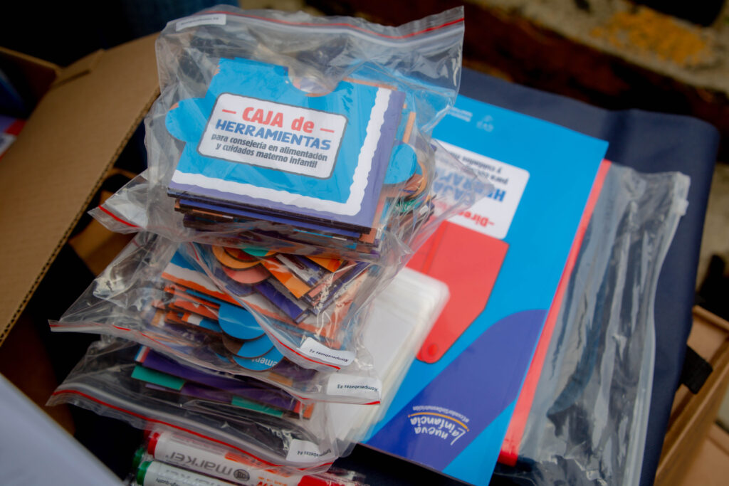 Las Cajas de Herramientas están conformadas por insumos educativos y didácticos que facilitan la consejería participativa y basada en evidencia. Entre estos constan juegos pedagógicos, cartillas, láminas informativas, rompecabezas y materiales gráficos orientados a la promoción de la alimentación saludable, lactancia materna, cuidado durante el embarazo, parto y posparto, prevención de enfermedades prevalentes en la infancia y uso de micronutrientes.