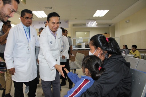La autoridad sanitaria realizó un recorrido por el HFIB para constatar la atención brindada a pacientes de diferentes áreas, la operatividad y el estado de las instalaciones. En el servicio de emergencia visitó las salas de choque y box quirúrgico, conversó con los padres de familia y verificó la atención que reciben los pequeños hospitalizados.