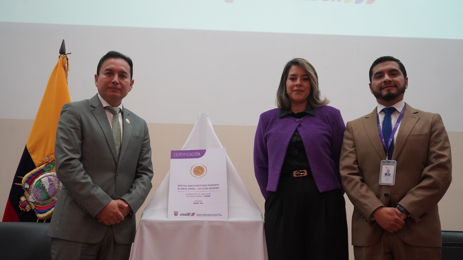 El Hospital Gineco Obstétrico Pediátrico Nueva Aurora Luz Elena Arismendi (HGONA), ubicado en el sur de Quito, se recertificó como Establecimiento de Salud Amigo de la Madre y el Niño (ESAMyN). El Ministro de Salud Pública, Franklin Encalada presidió el evento de la entrega de este reconocimiento, que se desarrolló el 26 de abril en el auditorio de esta casa de salud.