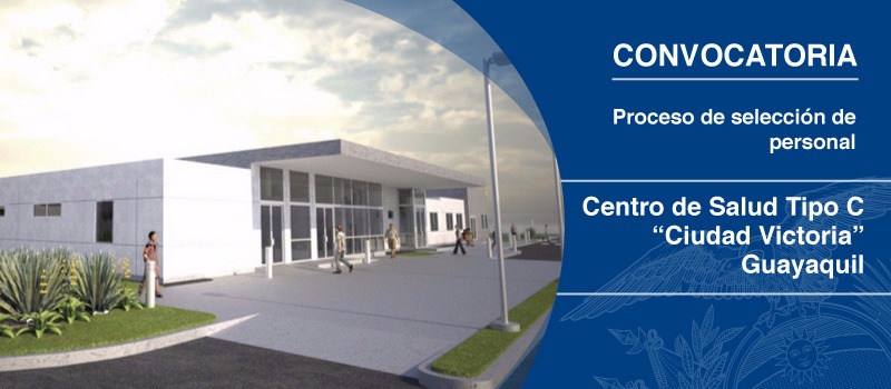 El Ministerio de Salud Pública inicia la convocatoria pública para el proceso de selección de personal bajo la modalidad de contrato de servicios ocasionales que ingresará para el nuevo Centro de Salud Tipo C «Ciudad Victoria», del Distrito de Salud 09D08, en la ciudad de Guayaquil desde el 19 hasta el 21 de septiembre del 2018.