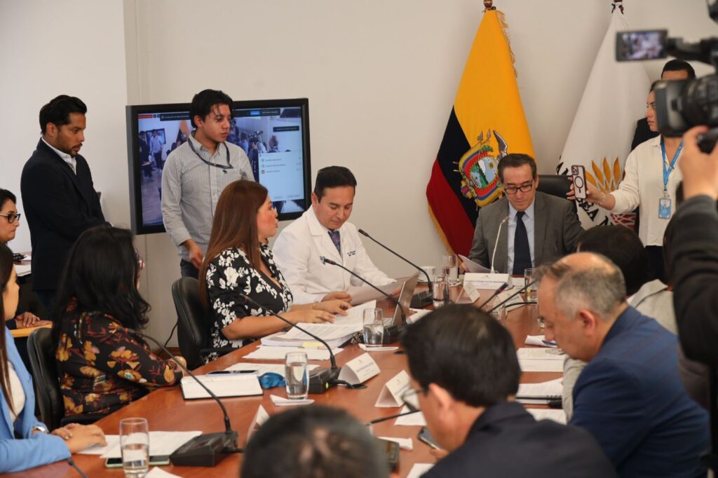 Este miércoles 5 de junio de 2024, el ministro de Salud Pública, Franklin Encalada, compareció ante las Comisiones Especializadas y Permanentes de Justicia y Estructura del Estado y de Biodiversidad y Recursos Naturales de la Asamblea Nacional.