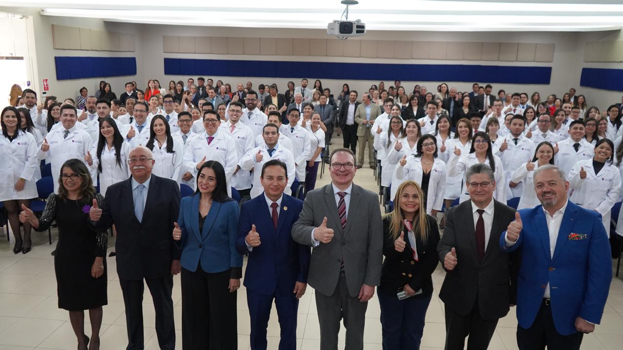 Al finalizar el evento, se realizó la imposición de mandiles y entrega de broches a los nuevos posgradistas de Medicina y Enfermería, profesionales de la salud que inician una nueva etapa en su formación académica.