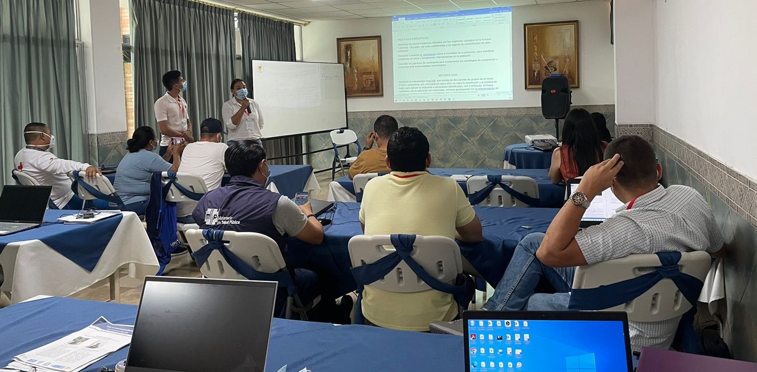 Profesionales de los Programas de Epidemiología de Campo (FETP)-Ecuador del Ministerio de Salud Pública (MSP) y el Instituto Nacional de Salud de Colombia impartieron el taller entre el 23 y 26 de agosto, con el apoyo de los Centros para el Control y Prevención de Enfermedades (CDC), la Red Mundial de Programas de Entrenamiento en Epidemiología de Campo e Intervenciones en Salud de los Estados Unidos; y la participación de la Cruz Roja Colombiana, Alto Comisionado de las Naciones Unidas para los Refugiados (ACNUR), Fondo de Población de las Naciones Unidas (UNFPA) y Organización Internacional para las Migraciones (OIM).