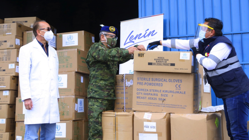 La tarde de este domingo 5 de julio de 2020, el Ministerio de Salud Pública (MSP), como ente rector de la red articulada de salud pública y privada, entregó a las autoridades del Hospital de Especialidades de Fuerzas Armadas N.1 cinco ventiladores mecánicos, además de insumos médicos como mascarillas, trajes de bioseguridad, batas descartables, gafas reutilizables y guantes, con la finalidad de apoyar las gestiones del hospital, en el marco de la emergencia sanitaria.