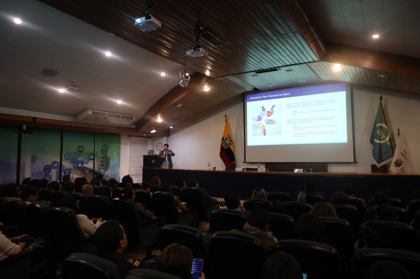 El acto estuvo presidido por el subsecretario Nacional de Vigilancia, Prevención y Control de la Salud, Francisco Pérez, con la participación de la vicerrectora de la UTE, Verónica Guerra. En la cita se escucharon ponencias sobre las acciones, estrategias y políticas públicas que lleva adelante esta cartera de Estado, en coordinación con la academia, los Gobiernos Autónomos Descentralizados (GAD) y la sociedad civil.