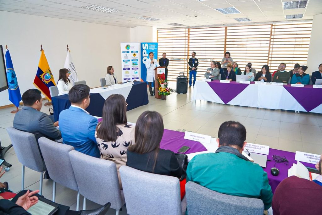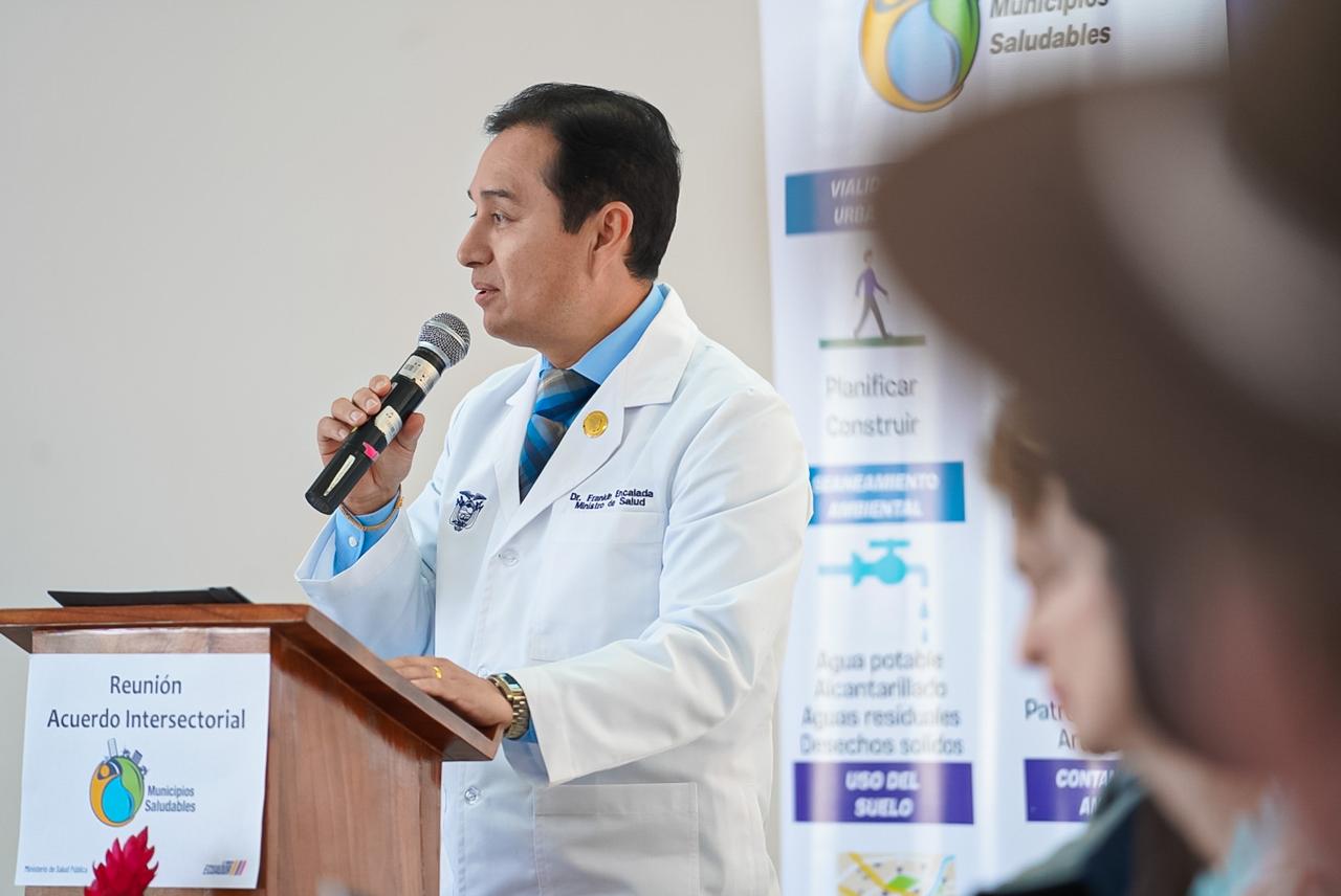 El ministro de Salud Pública, Franklin Encalada, lideró esta mañana la socialización del “Acuerdo Intersectorial para el fortalecimiento del Programa Municipios Saludables”. La reunión se realizó en la Plataforma Gubernamental de Desarrollo Social, en Quitumbe, al sur de Quito.
