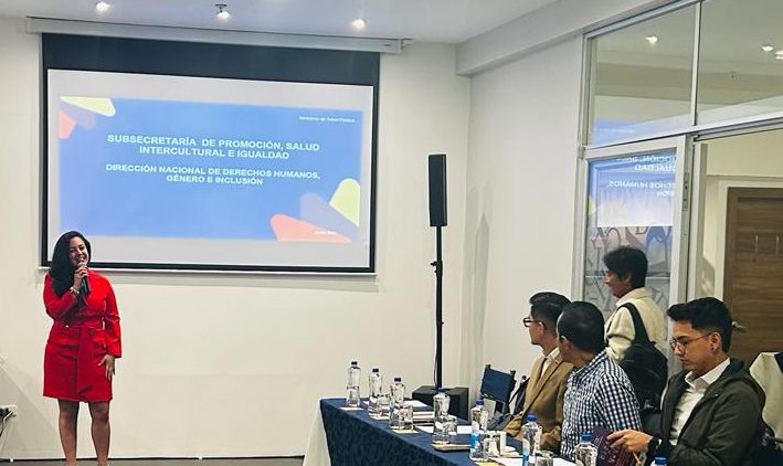 En el encuentro estuvo presente Andrea Bersosa, subsecretaria de Promoción, Salud Intercultural e Igualdad; Desirée Viteri, directora Nacional de Derechos Humanos, Género e Inclusión; Alexander Guano, subsecretario de Diversidades, Ministerio de la Mujer y Derechos Humanos; y Daniela Alvarado, Oficial de Contextos Humanitarios y Juventudes.