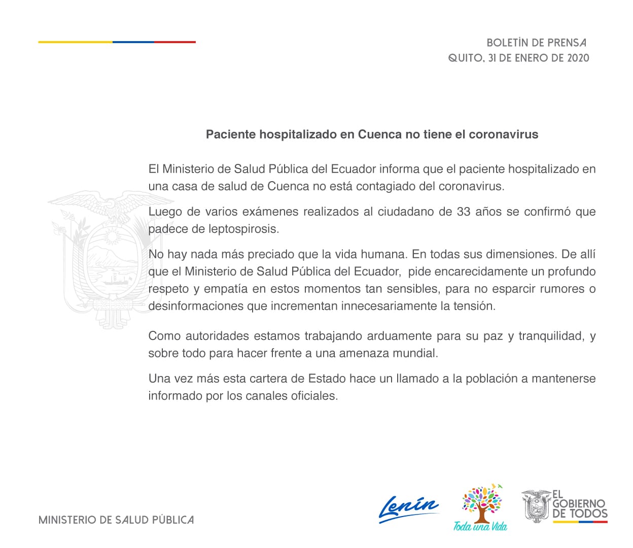 Paciente hospitalizado en Cuenca no tiene coronavirus